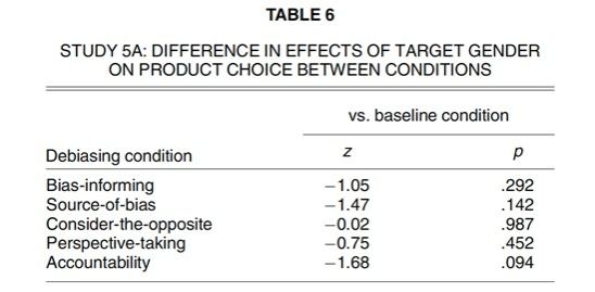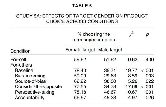 同時實驗使用了廣泛的決策情景和產(chǎn)品類型證明了該結(jié)論的穩(wěn)健性:實驗設(shè)置了激勵任務(wù)(實驗1、5B)和假設(shè)選擇任務(wù)(實驗2、5A)、公共和私密消費情境(后續(xù)實驗2)、實用型和享樂型產(chǎn)品(后續(xù)實驗4)、多樣化的決策情景(消費者為自己、他人選擇以及自己希望收到的禮物,后續(xù)實驗3)。另外,實驗證明了關(guān)于外形優(yōu)越(vs.功能優(yōu)越)產(chǎn)品性別差異世俗信念的兩個調(diào)節(jié)變量即信念強(qiáng)度和他人關(guān)系遠(yuǎn)近(實驗3A、3B、4)。最后,實驗證明無論在假設(shè)(實驗5A)還是現(xiàn)實情境(實驗5B)中現(xiàn)有文獻(xiàn)的多種干預(yù)方法都無法有效削弱該世俗信念的影響(如下表)。
