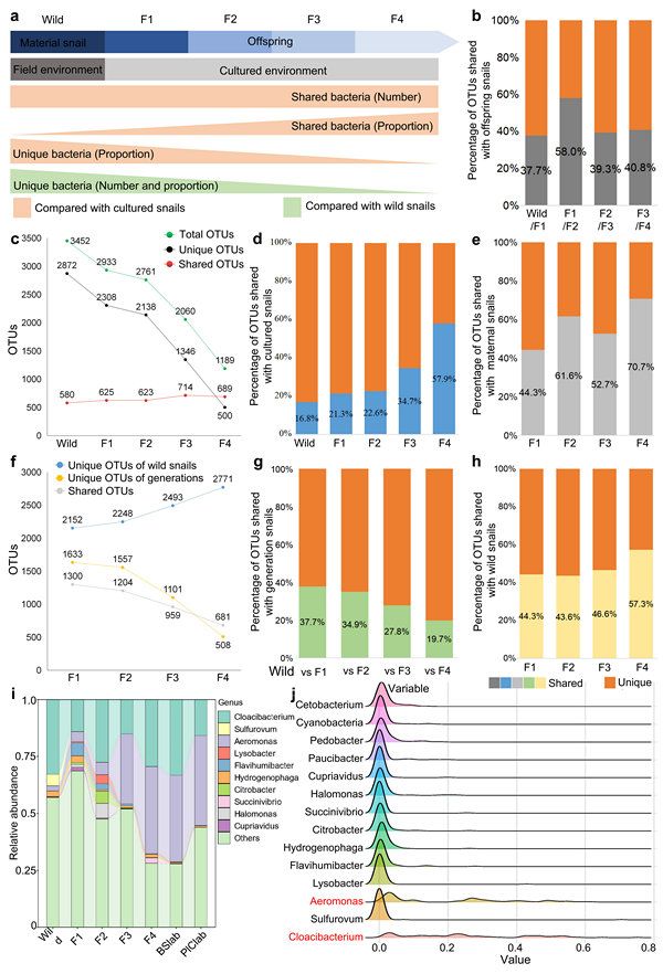 針對這一科學問題,中山大學中山醫(yī)學院吳忠道教授團隊于2023年11月29日在Microbiome雜志上在線發(fā)表了題為“Core gut microbes Cloacibacterium and Aeromonas associated with different gastropod species could be persistently transmitted across multiple generations”的研究論文。