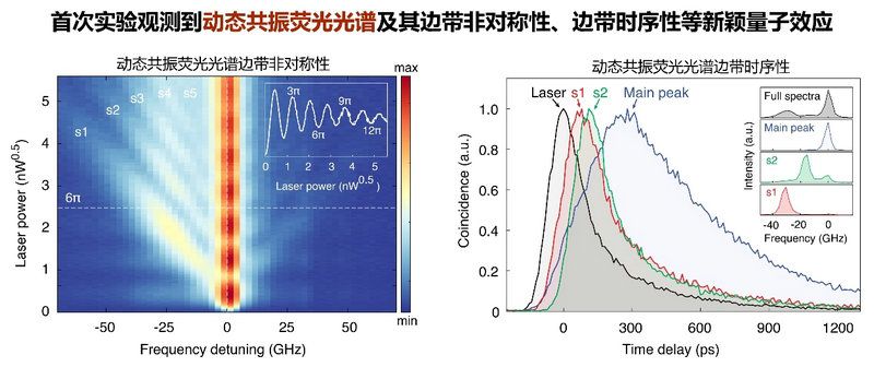 該團(tuán)隊(duì)瞄準(zhǔn)超快脈沖作用下光場(chǎng)與二能級(jí)輻射子如何動(dòng)態(tài)相互作用這一懸而未決的國(guó)際前沿問(wèn)題,首次基于半導(dǎo)體量子點(diǎn)與微柱腔的耦合實(shí)現(xiàn)了超快脈沖激光驅(qū)動(dòng)下二能級(jí)輻射子動(dòng)態(tài)共振熒光光譜的實(shí)驗(yàn)測(cè)量,并觀測(cè)到了邊帶非對(duì)稱性,邊帶時(shí)序性等新穎量子效應(yīng)。這項(xiàng)研究對(duì)進(jìn)一步提升量子光源性能、構(gòu)建光子數(shù)疊加態(tài)、光子數(shù)糾纏態(tài)等新型光量子態(tài)以及實(shí)現(xiàn)量子態(tài)的超快操控具有重要意義。