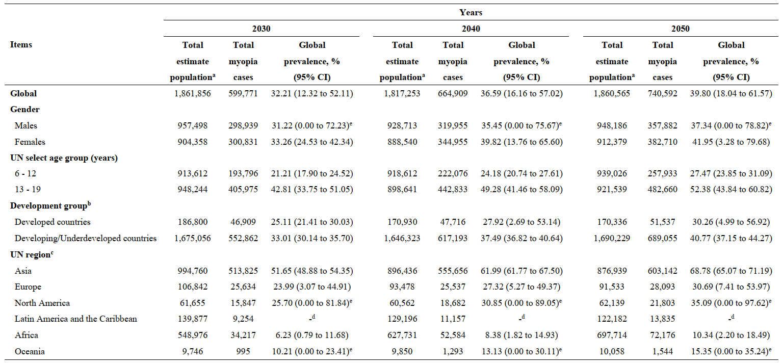 表1 2030-2050年全球兒童青少年近視流行趨勢預(yù)測分析