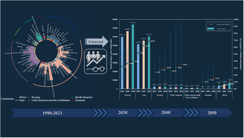 本研究匯總了全球范圍內(nèi)兒童青少年近視患病率的最新證據(jù),采用系統(tǒng)性方法綜合了關(guān)于近視總體患病率的詳細(xì)數(shù)據(jù),分析其流行趨勢并進行未來預(yù)測。研究突出了全球不同地區(qū)兒童青少年近視患病率的差異,并深入分析了性別、種族和地理位置等多種因素對近視患病率的影響。該研究為全球兒童青少年視力健康現(xiàn)狀提供了全面的證據(jù)。循證證據(jù)建議,兒童和青少年應(yīng)增加戶外活動,減少屏幕時間??紤]到社會、經(jīng)濟和文化背景差異,在公共衛(wèi)生決策中,相關(guān)部門應(yīng)當(dāng)更加重視區(qū)域化的近視預(yù)防策略,以更加有針對性和靈活的方式應(yīng)對日益嚴(yán)重的視力健康挑戰(zhàn)。