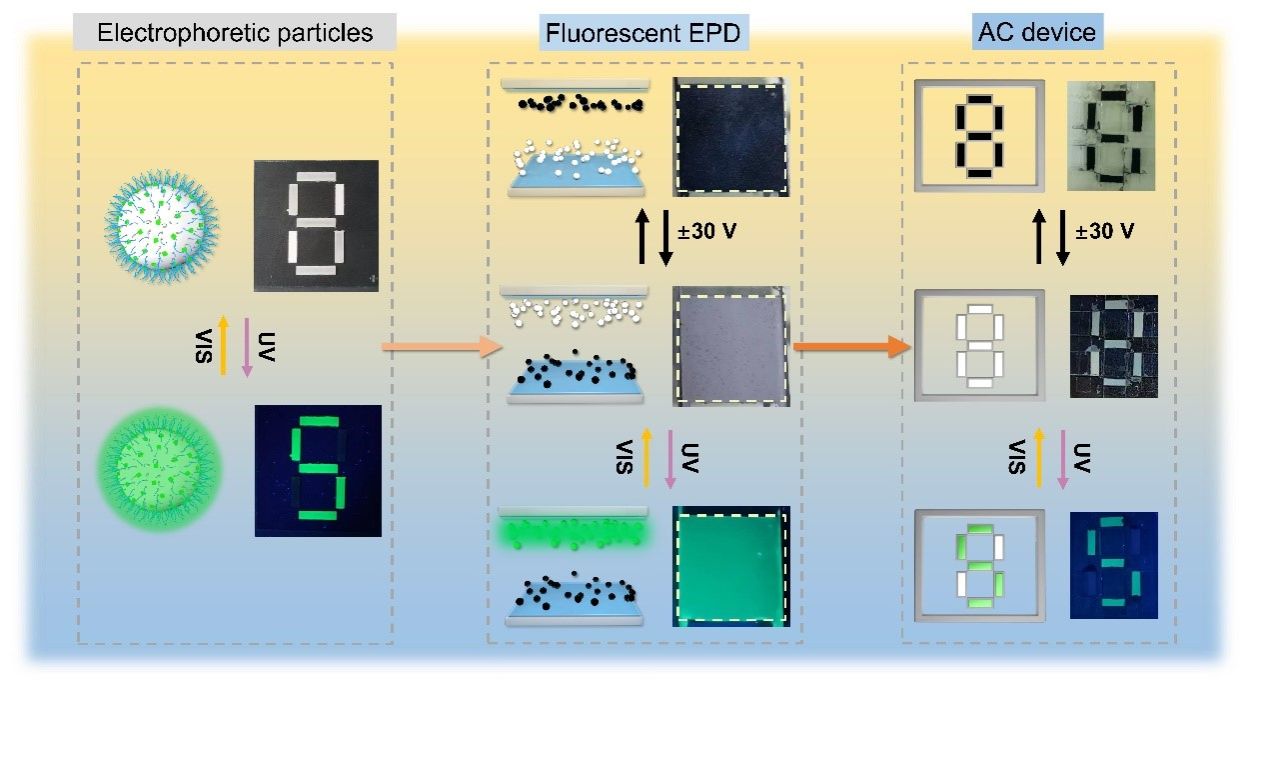 防偽技術(shù)在防止假冒產(chǎn)品和保護(hù)機(jī)密信息方面至關(guān)重要,廣泛應(yīng)用于產(chǎn)品標(biāo)簽、護(hù)照、機(jī)密文件等領(lǐng)域。光學(xué)防偽設(shè)備具有顯示性能好、使用便捷和響應(yīng)速度快等優(yōu)點(diǎn),但單一功能的防偽技術(shù)存在容易被復(fù)制且安全性不夠的問(wèn)題。因此,需開(kāi)發(fā)具備動(dòng)態(tài)顯示功能的防偽設(shè)備。電泳顯示器件(EPD)因其低功耗、動(dòng)態(tài)圖像切換和高環(huán)境對(duì)比度等優(yōu)勢(shì),成為動(dòng)態(tài)防偽技術(shù)的理想選擇。然而,目前商用EPD設(shè)備大多僅在可見(jiàn)光條件下工作,顯示性能依賴于光源強(qiáng)度,限制了其在黑暗環(huán)境和非可見(jiàn)光條件下的應(yīng)用。熒光電泳顯示技術(shù)則能使EPD在紫外光下正常工作,拓展了傳統(tǒng)EPD在紫外光場(chǎng)景中的應(yīng)用可能。同時(shí),通過(guò)結(jié)合反射和發(fā)射的雙顯示模式,可以實(shí)現(xiàn)多模式的動(dòng)態(tài)防偽應(yīng)用。
