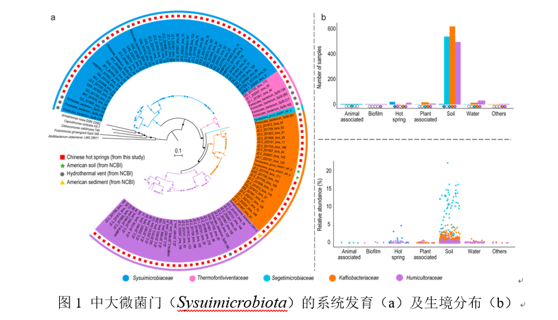 該成果以題為“Insights into chemoautotrophic traits of a prevalent bacterial phylum CSP1-3, herein Sysuimicrobiota”的論文發(fā)表在《National Science Review》學術(shù)期刊上。我校生命科學學院博士后劉蘭為本論文的第一作者,李文均教授和焦建宇副研究員為共同通訊作者。我院連政漢、呂愛萍、李蒙蒙、譚莎、羅振豪、袁洋、明語真、歐陽玉婷、劉澤濤、胡超建、陳瑛,印度國家農(nóng)業(yè)食品生物技術(shù)研究所Nimaichand Salam,天津大學張堅超副研究員,廣東省科學院生態(tài)環(huán)境與土壤研究所孫蔚旻研究員,中國科學院新疆生態(tài)與地理研究所高磊博士,中國科學技術(shù)大學花正雙教授、李昱嫻博士后,華南師范大學束文圣教授及內(nèi)華達大學拉斯維加斯分校Brian P. Hedlund教授為本文的共同作者。該研究得到了國家自然科學基金和國家科技基礎(chǔ)資源調(diào)查計劃等項目的資助。