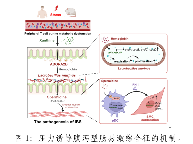中大新聞網(wǎng)訊(通訊員張麗)近日,Cell metabolism雜志在線發(fā)表了題為“Stress triggers irritable bowel syndrome with diarrhea through a spermidine-mediated decline in type I interferon”的研究成果,該研究為中山大學(xué)附屬第三醫(yī)院神經(jīng)免疫與健康長(zhǎng)壽研究中心的靳津團(tuán)隊(duì)成果,報(bào)道了壓力誘導(dǎo)腹瀉型腸易激綜合征的詳細(xì)分子機(jī)制。