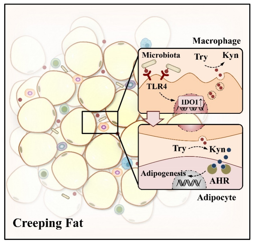 中大新聞網(wǎng)訊(通訊員劉山青、戴希安、簡文楊)11月13日,中山大學附屬第六醫(yī)院蘭平教授、何真主任醫(yī)師團隊在Cell子刊Cell Host and Microbe(IF=20.6)在線發(fā)表題為“Microbiota-induced alteration of kynurenine metabolism in macrophages drives formation of creeping fat in Crohn’s disease”的研究論文。該研究闡明了腸系膜微生物誘導的巨噬細胞代謝改變介導克羅恩病爬行脂肪形成的新機制,為爬行脂肪的干預提供新的治療靶點,也為改善克羅恩病患者預后、減少術后復發(fā)提供了新視角。