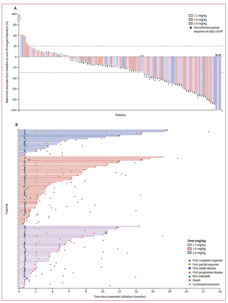 胃癌/胃食管結(jié)合部腺癌(A)最佳總體療效和(B)治療反應(yīng)的持續(xù)時(shí)間