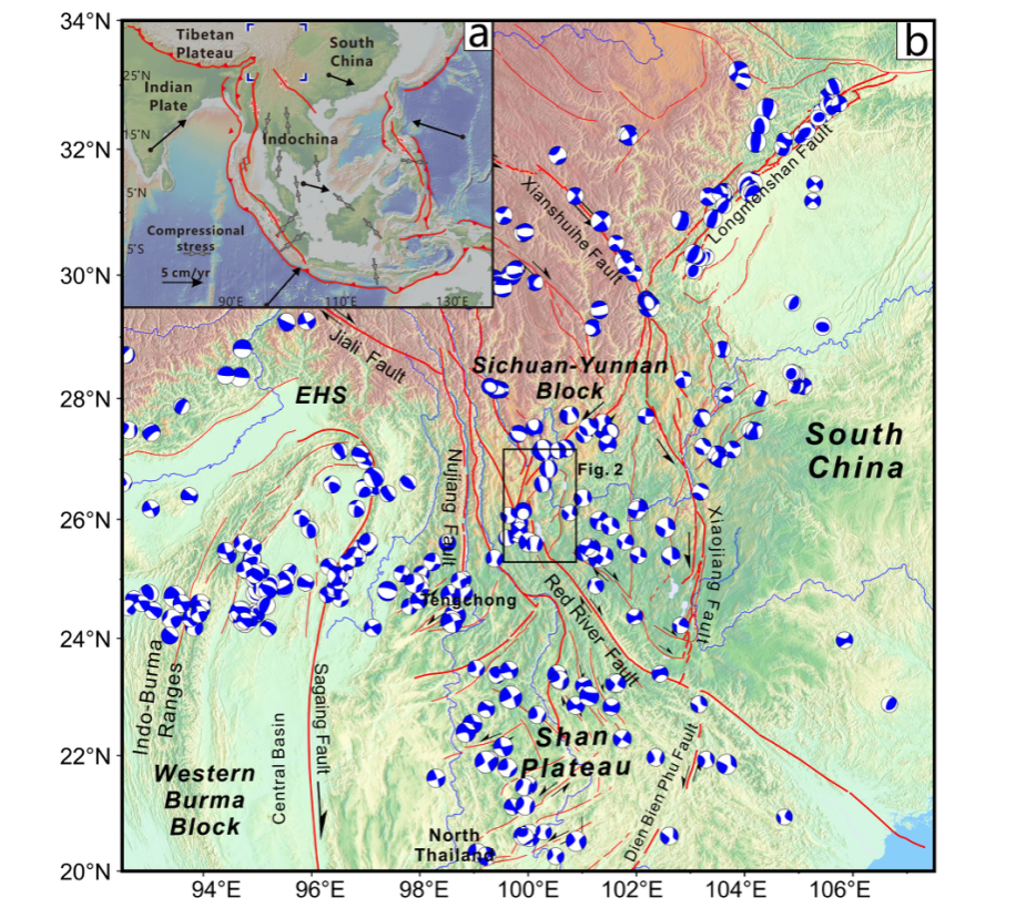 中大新聞網(wǎng)訊(通訊員王宇揚(yáng)、王洋)在匯聚造山帶的構(gòu)造演化的晚期階段,其運(yùn)動學(xué)特征和變形樣式往往發(fā)生顯著轉(zhuǎn)變。如自印度-亞歐板塊初始碰撞~40 Ma后(中-晚中新世),青藏高原東南緣經(jīng)歷了從斜向擠壓到走滑-伸展的轉(zhuǎn)換,且區(qū)域斷裂系統(tǒng)廣泛發(fā)生運(yùn)動學(xué)性質(zhì)的反轉(zhuǎn)。但是該區(qū)域性構(gòu)造反轉(zhuǎn)的時(shí)限及驅(qū)動機(jī)制仍不明確,制約了對陸內(nèi)造山過程與動力學(xué)的理解。