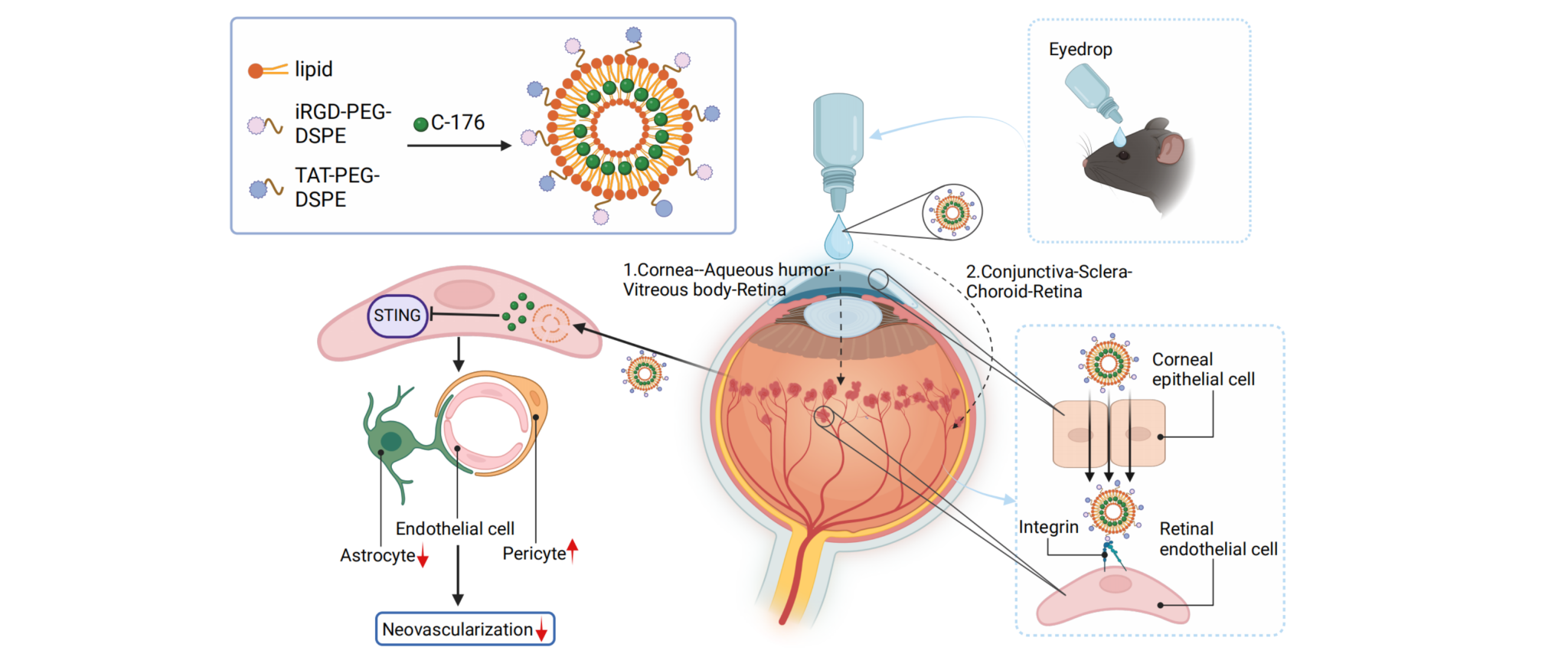 視網(wǎng)膜血管新生是增殖期糖尿病視網(wǎng)膜病變的特征性病理改變,是失明致盲的首要原因。然而,目前的治療手段十分有限,最常用的方法:激光光凝術(shù)和玻璃體內(nèi)注射抗血管內(nèi)皮生長(zhǎng)因子藥物等。但這些治療方法是有創(chuàng)、費(fèi)用高,且需要經(jīng)驗(yàn)豐富的眼科醫(yī)生操作,并伴隨多種不良反應(yīng),如眼底出血、視力下降等。因此,迫切需要探索無(wú)創(chuàng)性新治療方法。