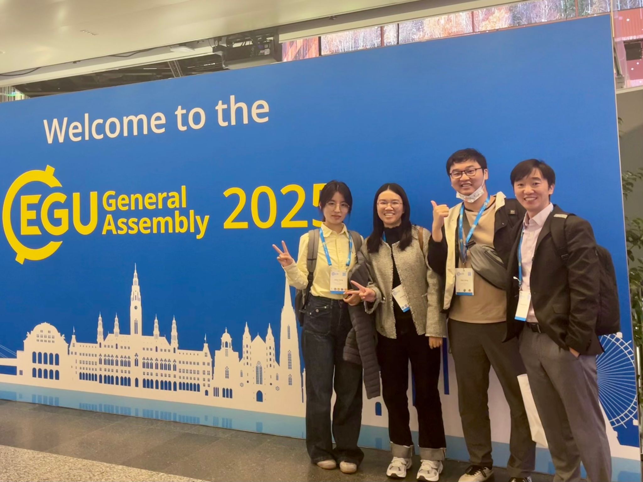 覃章才(右一)帶領(lǐng)學(xué)生在奧地利參加會議,右二為第一作者王藝杰