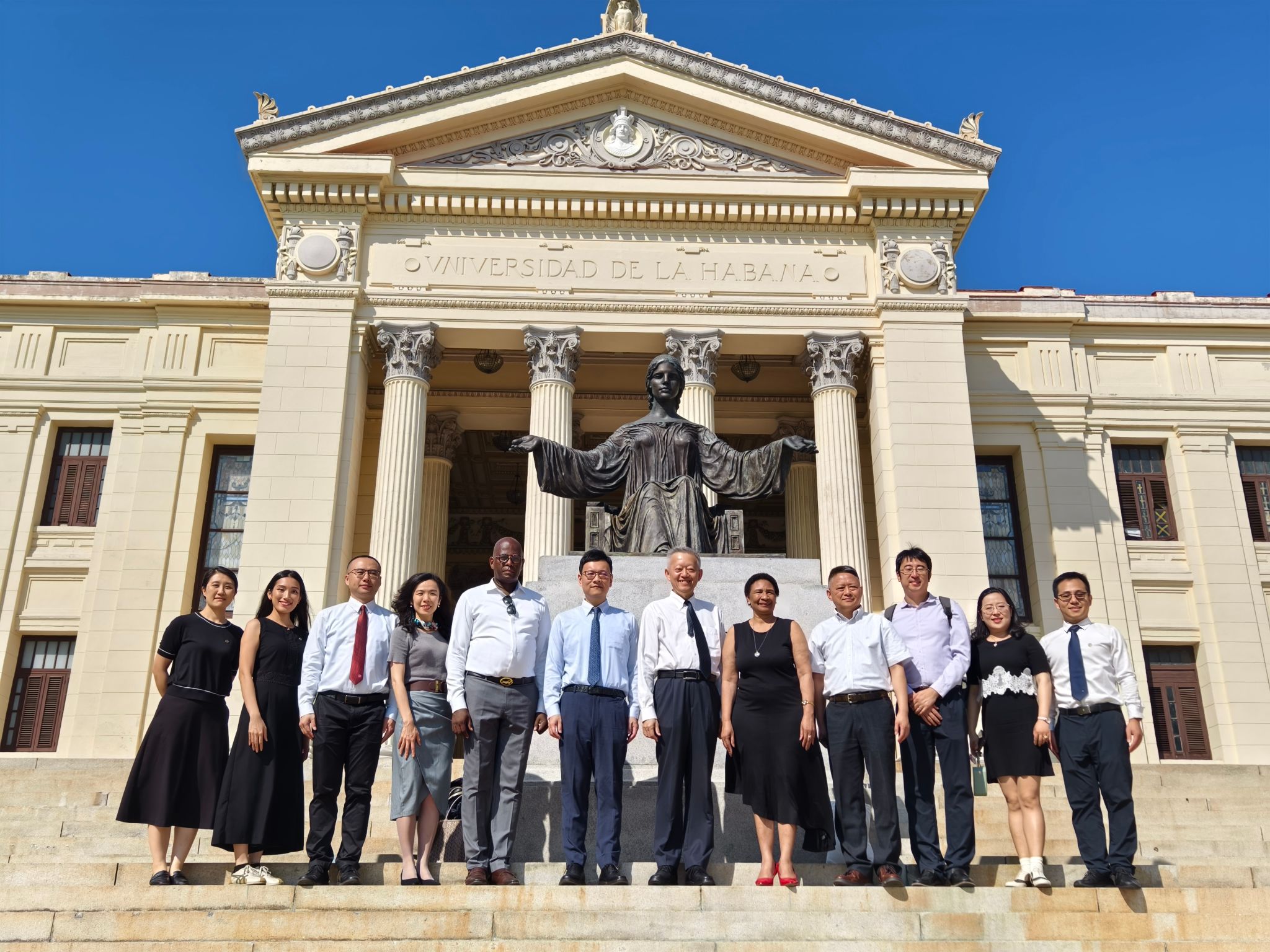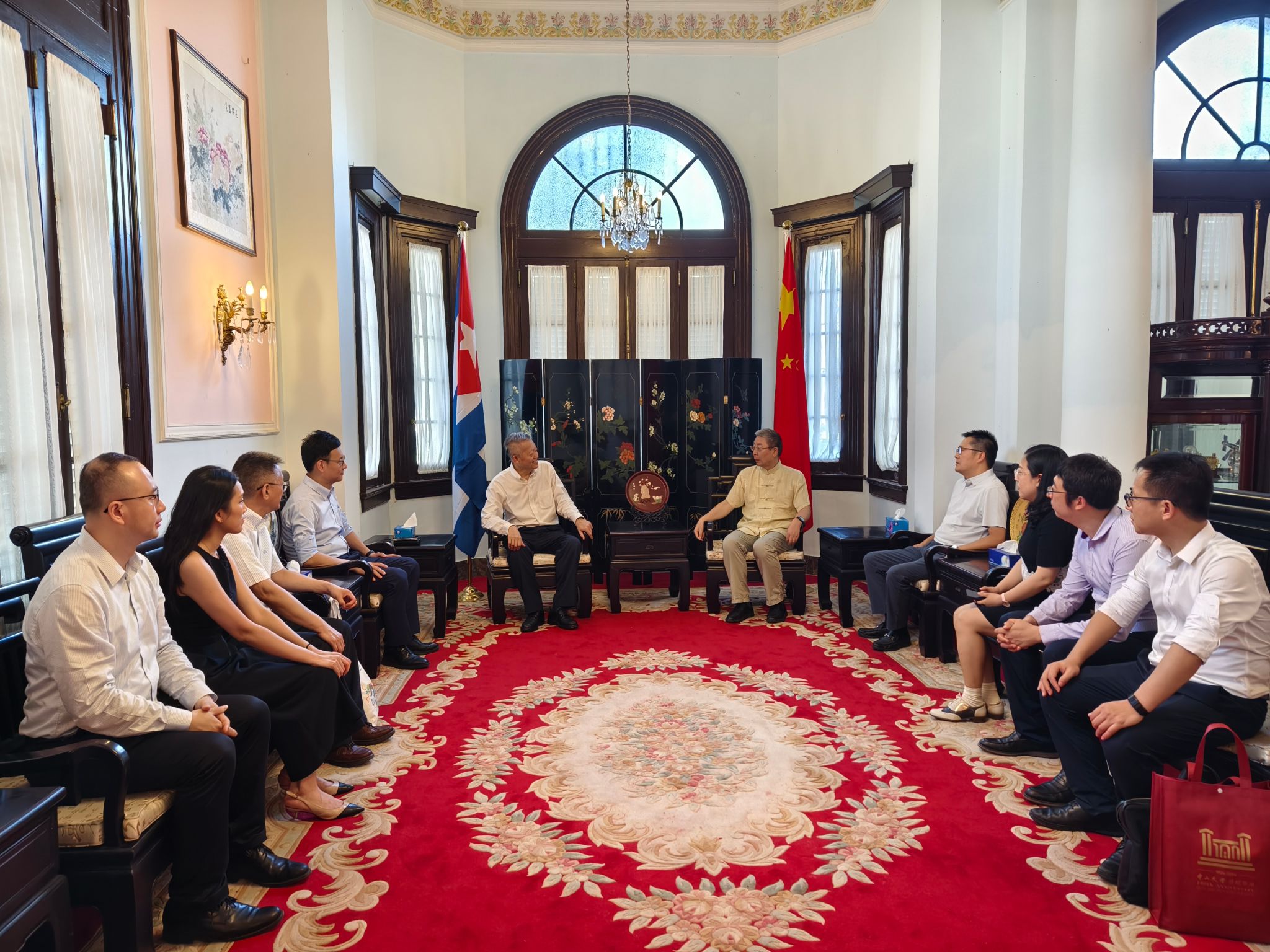 陳春聲書記一行在古巴期間還拜訪了中國駐古巴大使馬輝、公使銜參贊張步新和文化參贊韓立昕。陳春聲書記表示,中山大學(xué)將積極落實廣東省省長王偉中訪問古巴以及訪問哈瓦那大學(xué)時的工作指示,大力發(fā)展與古巴高校,尤其是哈瓦那大學(xué)的合作交流,積極拓展務(wù)實的學(xué)科合作,加強人員往來。馬輝大使表示,支持中山大學(xué)在生物醫(yī)藥、農(nóng)業(yè)科技、教育文旅等領(lǐng)域推動與哈瓦那大學(xué)的合作,希望兩國高校能夠共同努力,共享發(fā)展機遇,更好造福兩地人民。