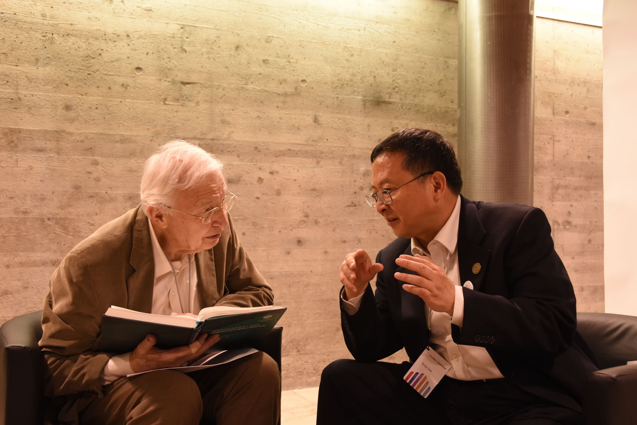 會(huì)議期間,高松校長(zhǎng)與1987年諾貝爾化學(xué)獎(jiǎng)獲得者、法國(guó)斯特拉斯堡大學(xué)教授Jean-Marie Lehn親切會(huì)晤,并邀請(qǐng)他參加中山大學(xué)百年校慶活動(dòng)。