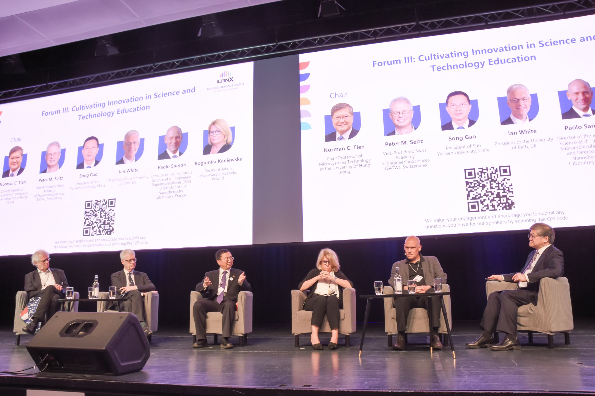 中大新聞網(wǎng)訊(通訊員李廣眾、張新楠)7月11日,高松校長(zhǎng)應(yīng)邀前往瑞士達(dá)沃斯出席iCANX達(dá)沃斯科學(xué)峰會(huì),與諾貝爾獎(jiǎng)得主及全球上百名科學(xué)界和產(chǎn)業(yè)界的參會(huì)代表等一起,聚焦創(chuàng)新、科學(xué)、技術(shù)、投資、管理、創(chuàng)業(yè)(ISTIME)主題,共話創(chuàng)新人才的培養(yǎng)和科學(xué)的未來(lái)。