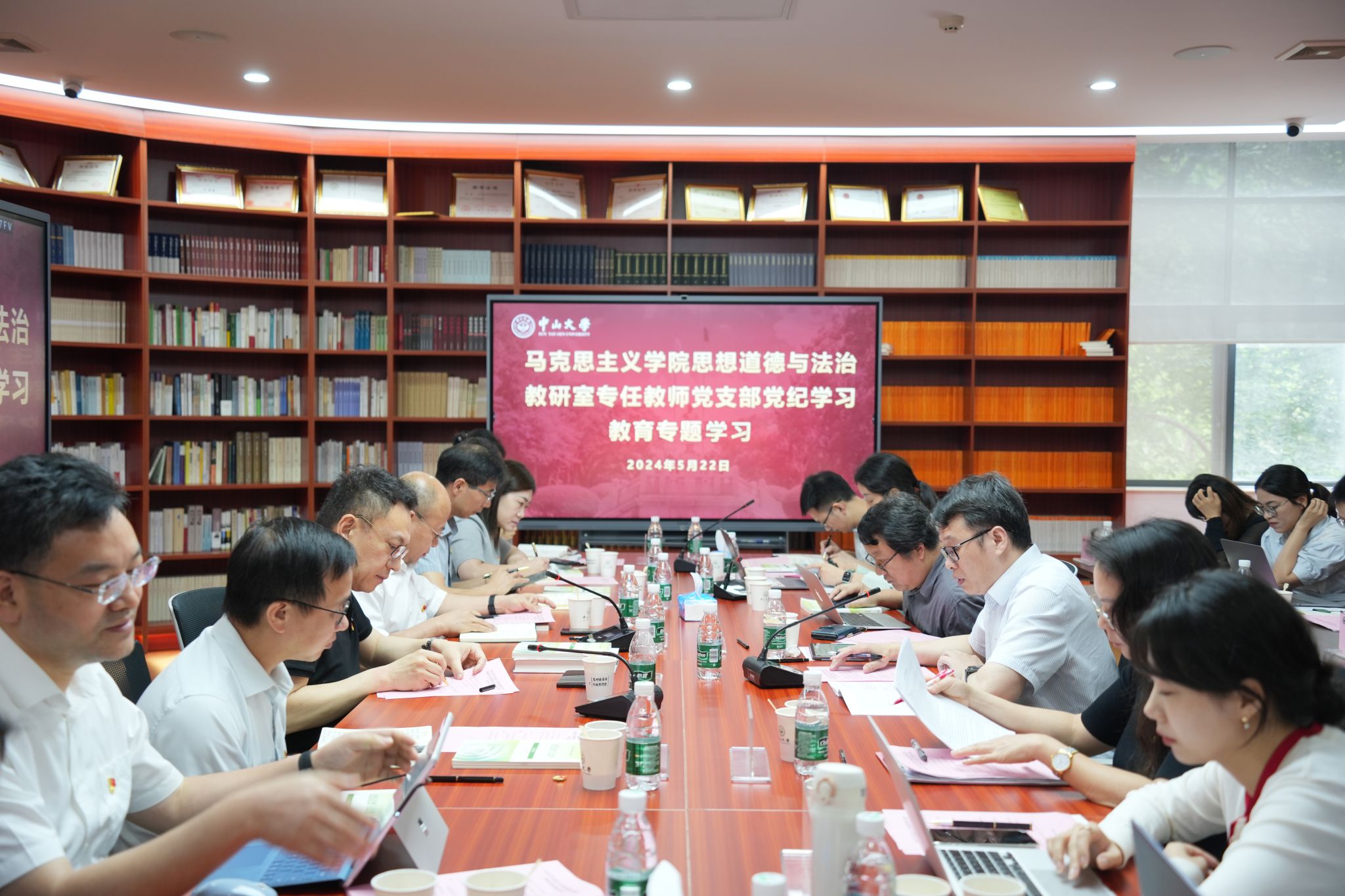 中大新聞網(wǎng)訊(通訊員李一帆)為深入學習貫徹修訂后的《中國共產(chǎn)黨紀律處分條例》(以下簡稱“《條例》”),將黨紀學習教育融入日常、抓在經(jīng)常,5月22日,馬克思主義學院思想道德與法治教研室專任教師黨支部組織召開黨紀學習教育專題組織生活。中山大學校黨委副書記王帆,馬克思主義學院黨委書記陳有志、院長林進平及領導班子其他成員,以及思想道德與法治教研室專任教師黨支部全體黨員參加會議。會議由黨支部書記廖茂忠主持。