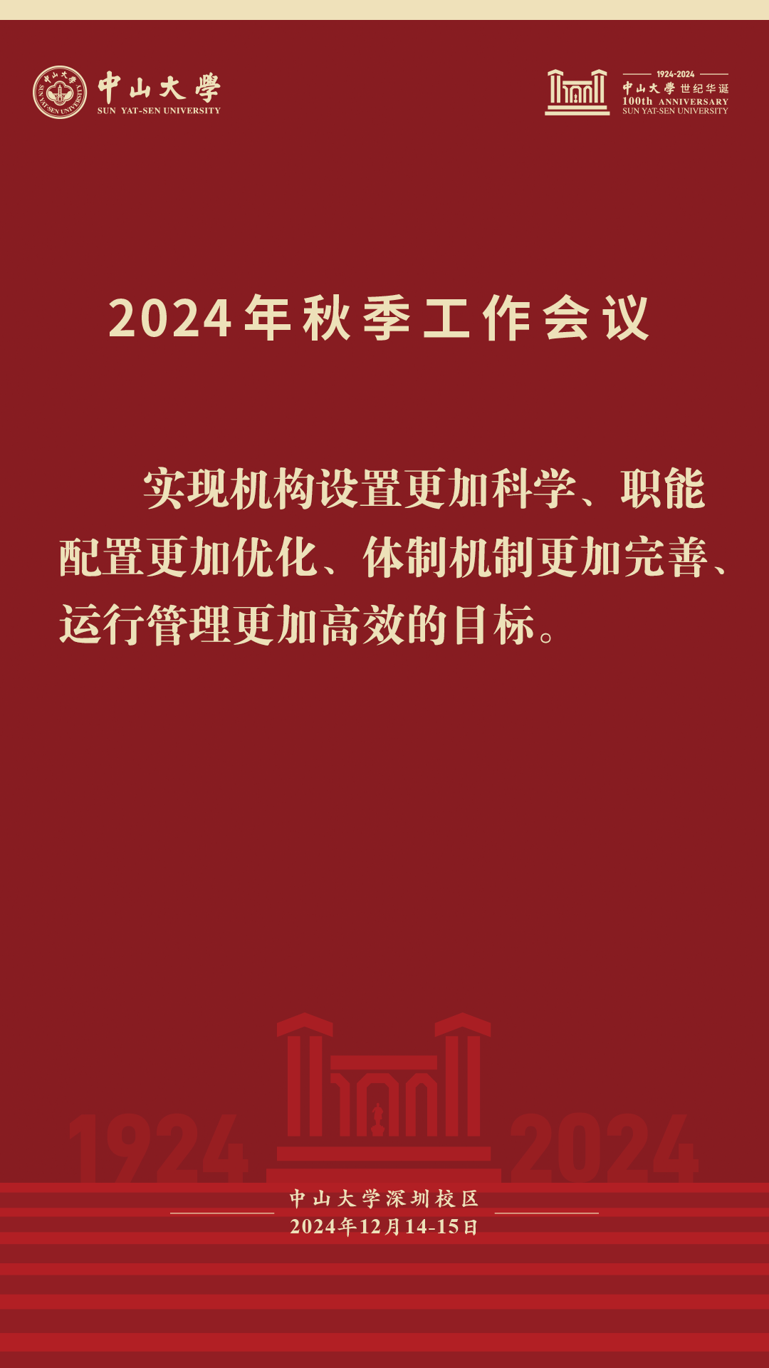 中大新聞網(wǎng)訊(記者余婷、馮賢哲 攝影鄭鈺、王佳鴻、肖遙)凝心聚力、奮發(fā)進(jìn)取,銳意改革、攻堅(jiān)克難。12月14日上午,中山大學(xué)2024年秋季工作會(huì)議在深圳校區(qū)開幕。本次大會(huì)主題是學(xué)習(xí)貫徹習(xí)近平總書記致中山大學(xué)建校100周年重要賀信精神,推進(jìn)學(xué)校治理體系和治理能力現(xiàn)代化,加快建設(shè)中國(guó)特色世界一流大學(xué)。