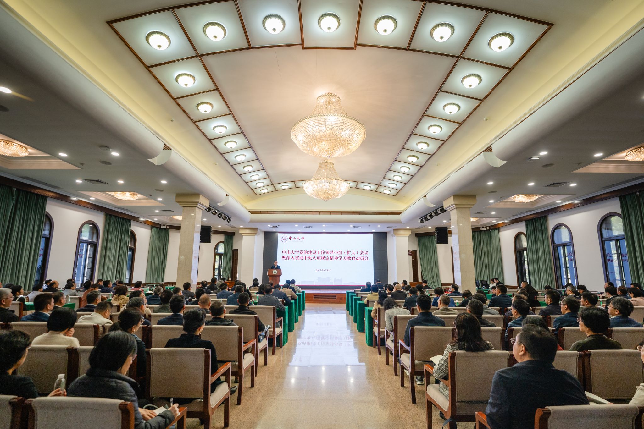 中大新聞網(wǎng)廣州3月19日電(記者張妍)3月19日,中山大學(xué)在廣州校區(qū)南校園懷士堂召開黨的建設(shè)工作領(lǐng)導(dǎo)小組(擴大)會議暨深入貫徹中央八項規(guī)定精神學(xué)習(xí)教育動員會議,傳達(dá)學(xué)習(xí)中央黨的建設(shè)工作領(lǐng)導(dǎo)小組有關(guān)會議精神和《中共中央辦公廳關(guān)于在全黨開展深入貫徹中央八項規(guī)定精神學(xué)習(xí)教育的通知》以及教育部黨組有關(guān)要求,在全校正式啟動深入貫徹中央八項規(guī)定精神學(xué)習(xí)教育,校黨委書記朱孔軍作動員講話。校領(lǐng)導(dǎo)、校長助理,校黨委委員、紀(jì)委委員,各二級單位的中層正職人員,各二級紀(jì)委書記以及學(xué)校學(xué)習(xí)教育工作專班有關(guān)同志等參加會議。