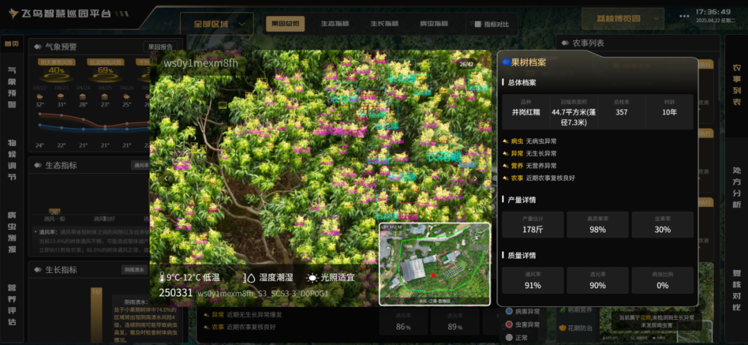 中大新聞網(wǎng)訊(記者李建平)“接入飛鳥系統(tǒng)后,無人機(jī)就能變成‘飛行醫(yī)生’,幫您的果園體檢,哪里花穗過長,哪里不夠通風(fēng)透光,哪里發(fā)現(xiàn)了病蟲害……都給您‘開好處方’。您每天一鍵飛巡,果園就實(shí)現(xiàn)智慧化管理。”眼下正是荔枝開花坐果的關(guān)鍵期,中山大學(xué)地理科學(xué)與規(guī)劃學(xué)院教授石茜接到了廣東各地荔枝果農(nóng)的邀請(qǐng),幫他們接入由她的團(tuán)隊(duì)研發(fā)的飛鳥系統(tǒng)。