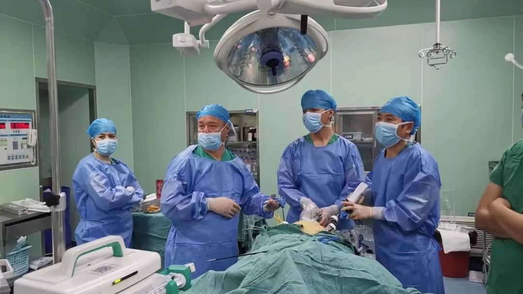 近日,中大五院幫扶干部、胃腸外科副主任、新疆喀什地區(qū)第一人民醫(yī)院(以下簡(jiǎn)稱“喀地一院”)肝膽胰腺外科主任蘇永輝,帶領(lǐng)喀地一院肝膽胰腺外科醫(yī)護(hù)團(tuán)隊(duì),成功為一名患有代謝綜合征的當(dāng)?shù)鼗颊邔?shí)施了“腹腔鏡下網(wǎng)膜后離斷袖狀胃切除術(shù)+膽囊切除術(shù)”。
