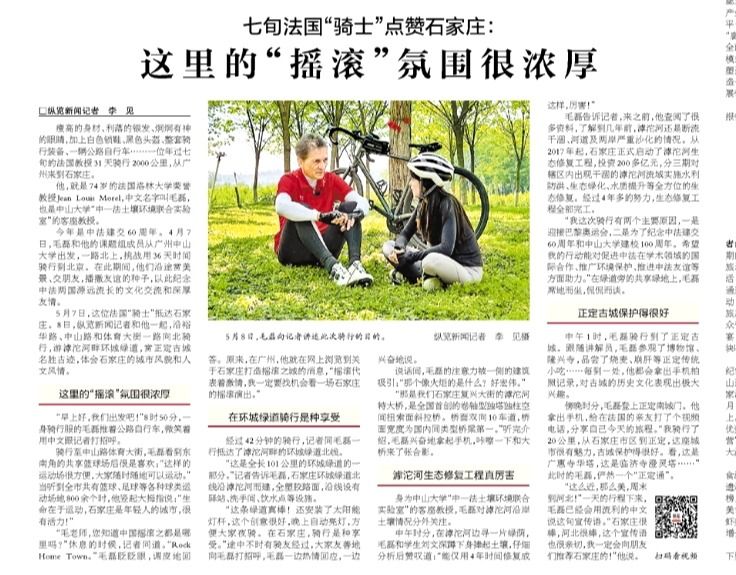 瘦高的身材、利落的銀發(fā)、炯炯有神的眼睛,加上白色鎖鞋、黑色頭盔、整套騎行裝備、一輛公路自行車(chē)……一位年過(guò)七旬的法國(guó)教授31天騎行2000公里,從廣州來(lái)到石家莊。他,就是74歲的法國(guó)洛林大學(xué)榮譽(yù)教授Jean Louis Morel,中文名字叫毛磊,也是中山大學(xué)“中—法土壤環(huán)境聯(lián)合實(shí)驗(yàn)室”的客座教授。今年是中法建交60周年。4...