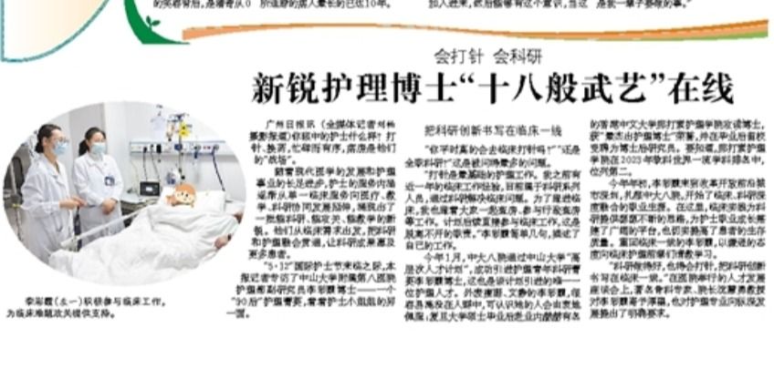 隨著現(xiàn)代醫(yī)學(xué)的發(fā)展和護(hù)理事業(yè)的長(zhǎng)足進(jìn)步,護(hù)士的服務(wù)內(nèi)涵逐漸從單一臨床服務(wù)向醫(yī)療、教學(xué)、科研協(xié)同發(fā)展延伸,涌現(xiàn)出了一批能科研、能攻關(guān)、能教學(xué)的新銳。他們從臨床需求出發(fā),把科研和護(hù)理融會(huì)貫通,讓科研成果惠及更多患者?!?·12”國(guó)際護(hù)士節(jié)來(lái)臨之際,本報(bào)記者專(zhuān)訪(fǎng)了中山大學(xué)附屬第八醫(yī)院護(hù)理部副研究員李彩霞博...