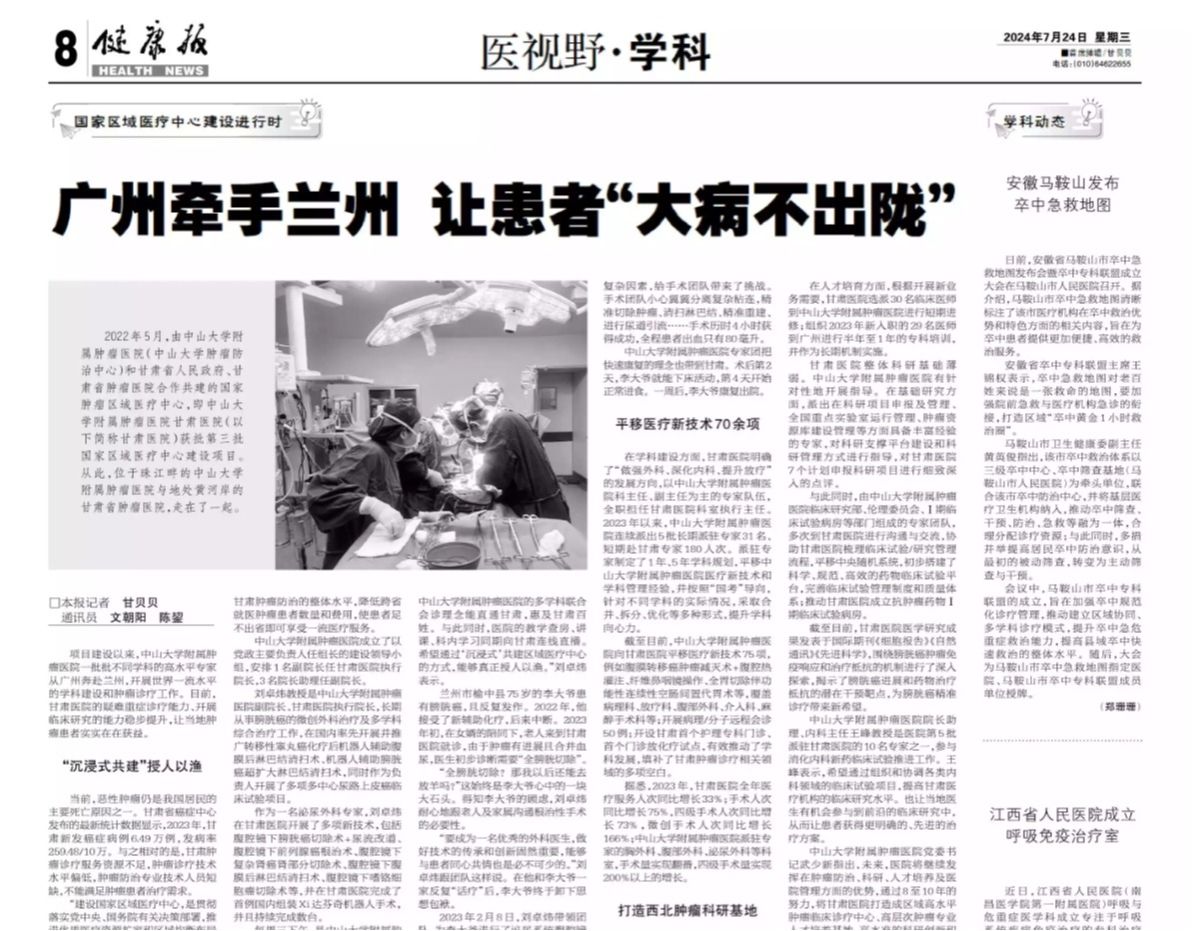 2022年5月,由中山大學(xué)附屬腫瘤醫(yī)院(中山大學(xué)腫瘤防治中心)和甘肅省人民政府、甘肅省腫瘤醫(yī)院合作共建的國家腫瘤區(qū)域醫(yī)療中心,即中山大學(xué)附屬腫瘤醫(yī)院甘肅醫(yī)院(以下簡稱甘肅醫(yī)院)獲批第三批國家區(qū)域醫(yī)療中心建設(shè)項(xiàng)目。從此,位于珠江畔的中山大學(xué)附屬腫瘤醫(yī)院與地處黃河岸的甘肅省腫瘤醫(yī)院,走在了一起。項(xiàng)目建設(shè)以...