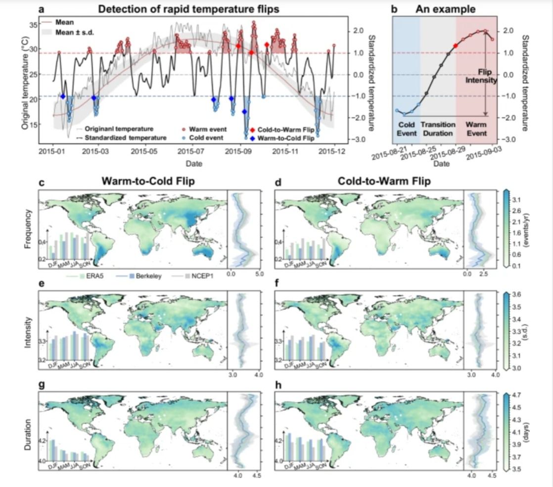 中山大學(xué)教授劉小平、羅明團(tuán)隊(duì)與中國(guó)科學(xué)院地理科學(xué)與資源研究所研究員裴韜團(tuán)隊(duì)合作,首次揭示了全球變暖背景下氣溫冷暖翻轉(zhuǎn)的新現(xiàn)象,即氣溫在幾天內(nèi)由異常偏暖快速轉(zhuǎn)變?yōu)楫惓F?,或由異常偏冷快速轉(zhuǎn)變?yōu)楫惓F臉O端事件。近日,相關(guān)成果在線發(fā)表于《自然-通訊》。氣溫冷暖急劇交替的“過山車”式變化給社會(huì)和生態(tài)...