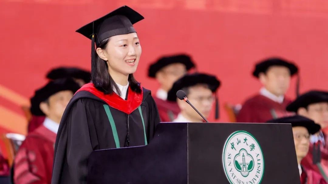 6月28日上午,在中山大學(xué)2022屆畢業(yè)典禮暨2022年學(xué)位授予儀式上,中山醫(yī)學(xué)院2017級(jí)臨床醫(yī)學(xué)專業(yè)本科畢業(yè)生劉弋丹作為本科生優(yōu)秀畢業(yè)生代表發(fā)言。