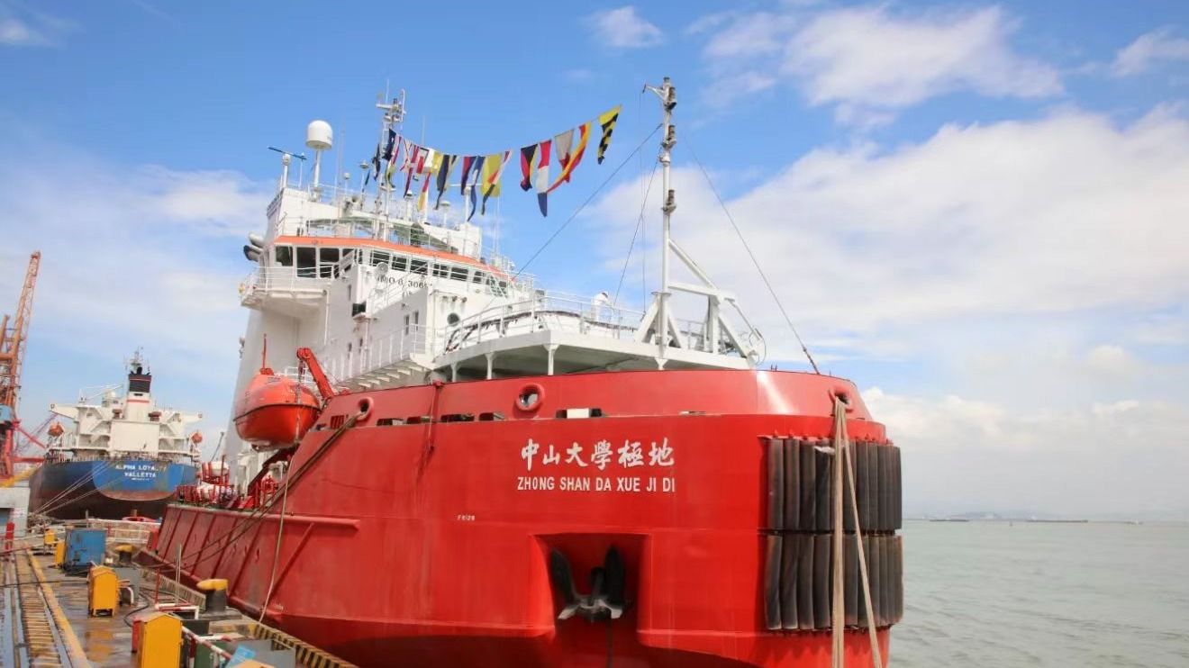 中大新聞網(wǎng)廣州10月1日電(記者邱清萌、曹寧、吳立堅)9月30日,“中山大學(xué)極地”號極地破冰多用途船命名儀式在廣州文沖船舶修造有限公司碼頭舉行。中山大學(xué)黨委書記陳春聲教授,中國科學(xué)院院士、中山大學(xué)校長高松教授一同為該船點睛,高松校長為“中山大學(xué)極地”號正式命名,行擲瓶禮,希望她“承擔(dān)起面向世界科技前沿的重擔(dān),承托起人類極地海洋的求索夢想!破冰遠航、天空海闊,順?biāo)炱桨?!?