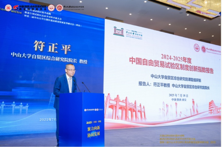 7月18日,中山大學(xué)自貿(mào)區(qū)綜合研究院在陜西西安發(fā)布了“2024-2025年度中國自由貿(mào)易試驗(yàn)區(qū)制度創(chuàng)新指數(shù)”。記者獲悉,全國共計(jì)57個(gè)片區(qū)參與評(píng)估,根據(jù)總指數(shù)得分情況,全國自貿(mào)片區(qū)排名前十位的依次是:廣東前海、上海(浦東)、廣東南沙、上海(臨港)、天津、北京、福建廈門、重慶、四川成都、江蘇蘇州。符正平作報(bào)告“...